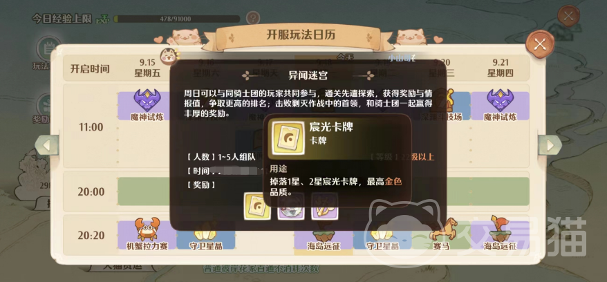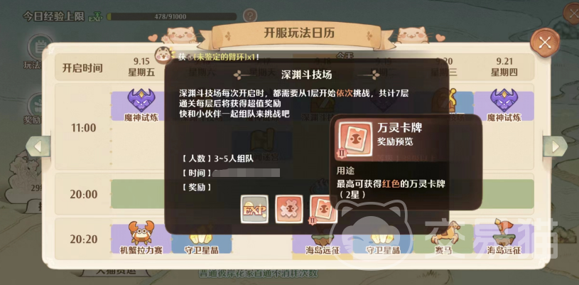 另外需要注意的一点是不管斗技场,还是异闻迷宫和海岛远征,它们都是限时开放的模式,所以建议大家现在玩法日历中参考一下最近一次开放的时间,以此提前做好准备。