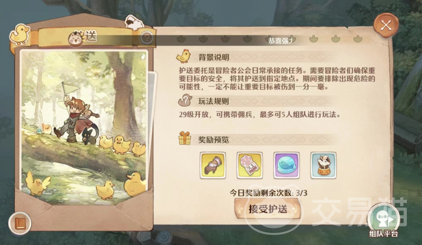 这一玩法本身需要五人组队才能开启,你可以通过组队平台向他人发送邀请,从而携手共进,也可以直接带四个电脑操控的佣兵前往挑战,里面会给予鱼冻,扭蛋券和装备奖励,非常值得各位前去尝试。不过使用这一功能会有一个前置条件,那就是你的等级首先得达到29级,否则是没法开启该玩法的。