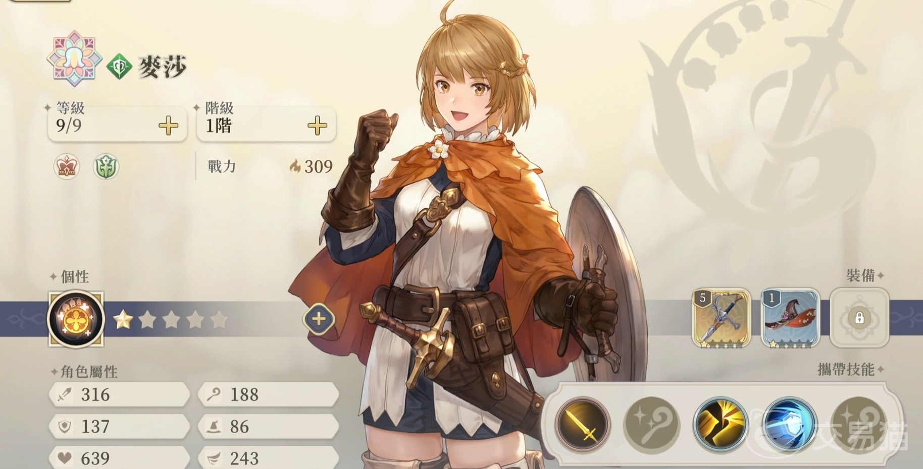 第四位推荐的角色是:麦莎,麦莎在前期绝对是主力角色,将她培养起来的话,玩家刷副本、爬塔会非常轻松,她在有盾的情况下,可以施展出一整套克敌秒杀技能,同时麦莎的续航能力也是不错的,在战斗中能够生存比较久,不过,到了后期的时候,就需要支援在她旁边进行辅助咯!