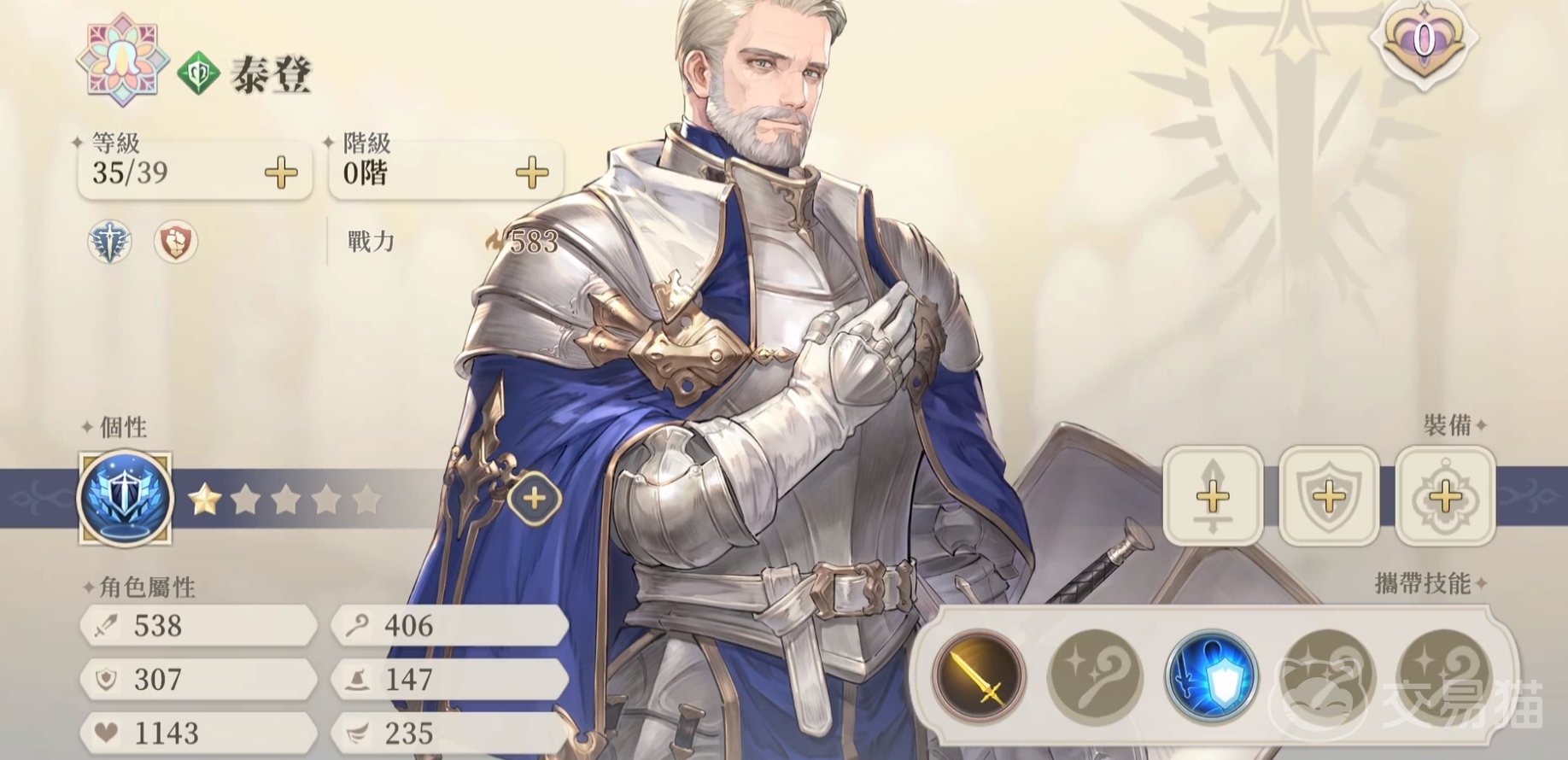 第三位推荐的角色是:泰登,泰登的稀有度是传说五星级的,属性面板比较优秀,在初始状态下的他就拥有极高伤害,血量也挺厚的,在战斗中的机动性也是不错滴~他的个性是【百战之盾】,能够给他提供格挡的效果,并使得该角色在结束行动后,对敌方目标所在的方向造成100%的物理伤害,如果同时使用一个前进技能的话,那么他的伤害可以再度提升40%。泰登的初始普攻技能与歌洛莉亚一样,而他的支援技能则是很厉害的,能够让他在瞬间就能得到一个护盾,来抵御伤害。