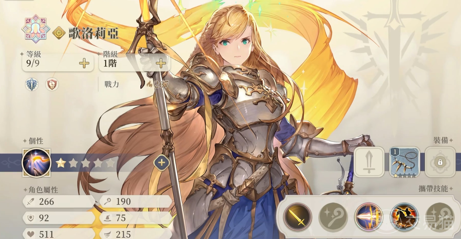 第二位推荐的角色是:歌洛莉亚,她的属性面板非常优秀,个性是【正义的旗帜】,让她的攻击强度提升20%,在开局的时候,该角色就会启动自身的扬旗效果,增加移动效果,并无视敌人身上的防御,给他们造成沉重的一击,强度非常不错。在初始状态下的歌洛莉亚拥有的普攻是【斩击】物理伤害比较强,但是她的这一状态下的职业技能却非常突出,能够选择靠近自身十字范围内的一名敌人,冲锋到他的身边进行攻击,并有击退效果,开荒时期的玩家如果有她的帮助,那刷副本会轻松很多哦!