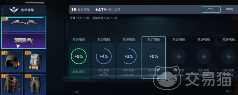 通过消耗超合金可以强化装备,强化的时候建议是雨露均沾,平均的每个都强化上去,这样就可以凑齐套装的等级效果,这个等级提升也会给到不错的属性加成。具体怎么提升要看套装等级的激活条件,例如拥有7个强化等级15以上的装备以及总强化程度达到280%的时候就可以升到下一个套装等级。