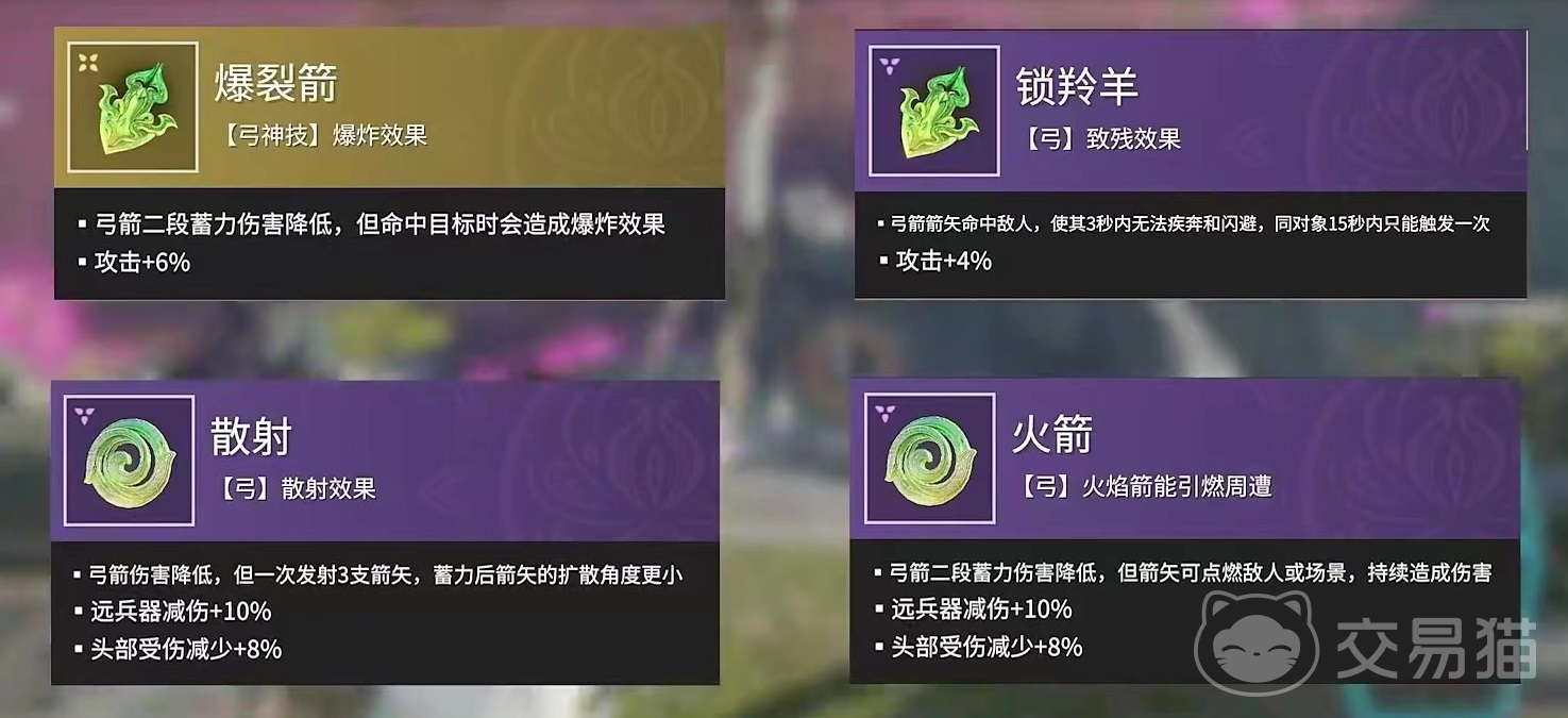 在魂玉选择方面,爆裂箭是小编非常喜欢的一个,虽然降低二段蓄力伤害,但是命中目标造成爆炸效果。散射使弓箭伤害降低,但是一次性能发射出三支箭矢,蓄力之后发射降低扩散角度,另外还能带来远程兵器减伤和头部受伤减少等属性。火箭降低二段蓄力伤害,但射出箭矢可以将敌人或者是场景点燃起来,燃烧之后造成持续伤害,另外一些特定时候还有额外效果。锁羚羊是在箭矢命中敌人后,使其接下来三秒内不能进行闪避和疾奔,同一对象在15秒钟之内只能触发一次,用于追击目标非常好用。