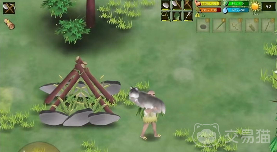 除了种植和捡野生食物外,你还可打猎,可以打猎的物种很多,包括天上飞的鸟、水里游的鱼、地下跑的兔子、野山鸡、狼都可以当做目标。不过狼和兔子、鸟的捕猎方式不一样,使用的诱饵也不一样,鸟、野山鸡和兔子都属于小型的动物,只要放一些地瓜种子,制作一个小的陷阱就可以轻松捕获。