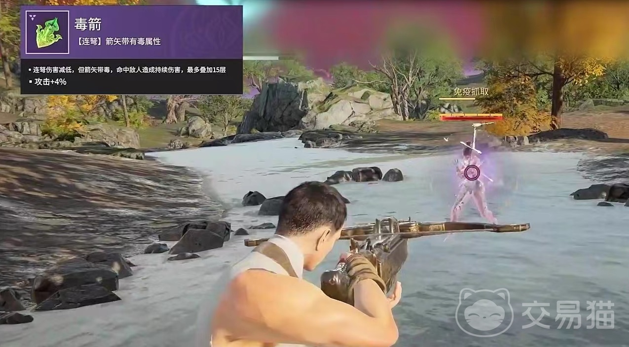 还可以选择毒箭,以降低伤害为代价附加上中毒效果,命中敌人然后有可持续伤害,还可以逐步叠加。本来弩箭伤害就不高,降低一些也完全可以接受,而叠加起来中毒却很可观。还有一种选择就是带上治疗弩,在射击时附加回复效果,能给自己加血,不一定适合所有战斗场景,可以根据需要选择。同样效果还有治疗箭,但是治疗箭恢复目标是友军,朝着友军射出弩箭就可以对其进行治疗,相当于有了辅助能力。
