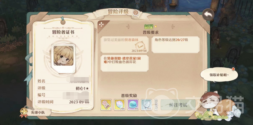 总之三个条件顺利完成之后,玩家基本也具备轻松应对考试的战力了,完成考试后就可以获得新星评级了,达到该评级后会有扭蛋券,光珀,鱼冻和银叶这些优质的资源,整体的收益还是十分可观的。