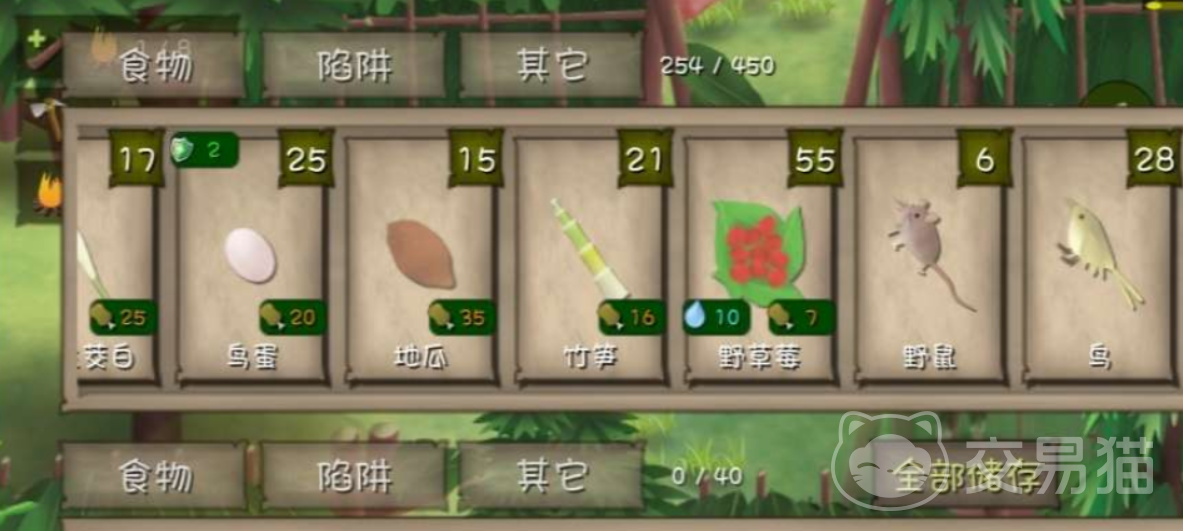 最后一款食物,也是游戏中饱食度最高的食物——野兔炖竹笋,使用以后饱食度都可增加370点,而水分和健康也很多,分别是150点和6点,而这款实物的制作方法也比较难,因为食材中有1个兔子,4个竹笋和1碗水,其中兔子的获取方式较难,需要设置陷阱来打猎,而捕捉兔子的概率并不是很高,很看脸,而制作时还要消耗5点水分、20点体力和5点饱食度。