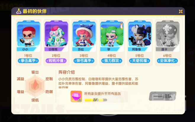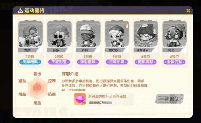 1~6号位分别是小小、墩墩、苏拉、菲、鲁鲁、提卡。