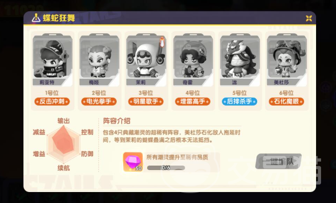 这套阵容组起来比较容易,核心几个潮灵都可以通过扭蛋轻松抽取,小小提供控制,墩墩和菲打输出,苏拉则是残血收割,鲁鲁给队伍提供增益,最后提卡则能去除负面效果。