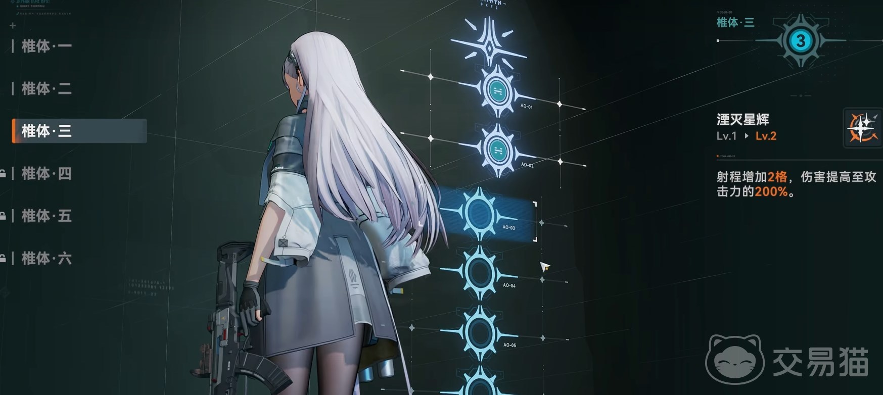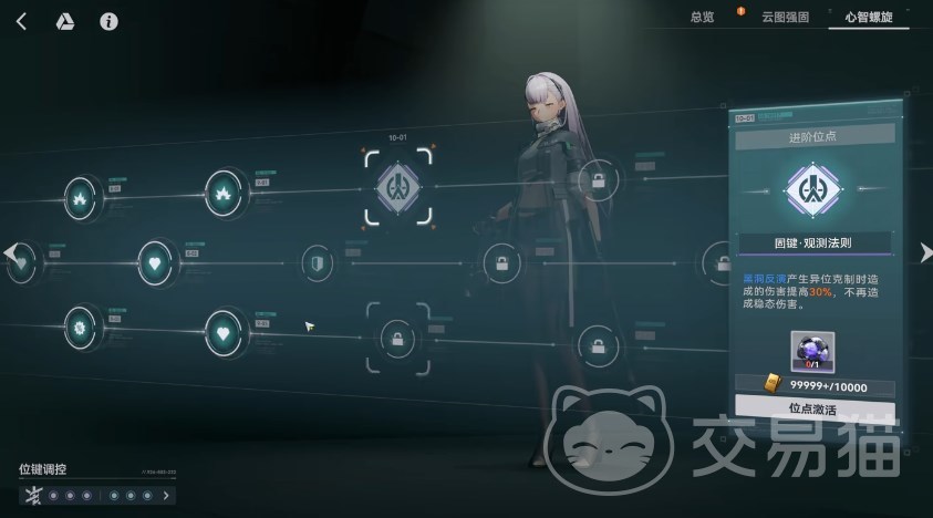 左侧的固键则是与心智螺旋关联,升级心智螺旋才能升级固键,而升级螺旋则需要用到转录导体这类的材料。目前这些材料可以通过两种方法获得,其一是模拟评估中的镜像勘测,有4个章节,每一个对应不同等级的材料,每个章节的关卡首次通关的时候都会给到很丰厚的奖励,可以直接开自律得到材料、经验,推荐每天的体力都留给这个。