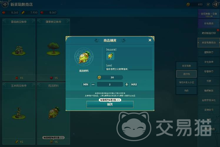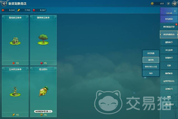 1、农作物的交换券基本上不用兑换太多,因为幻兽之森的田地和树木的栽种上限是30个,因此单一品项最多就交换30个就可以了。
