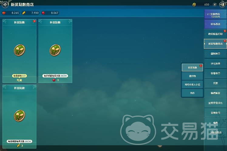 1、新苗点数是跟幻兽之森流浪商人购买物品的唯一货币,每周最多入手93个新苗点数,免费的3个,番茄、玉米、苹果可以各兑换30个,这样一共就是93个。