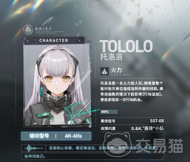 比方说立绘上的红发少女“白刃”,从她的技能形式不难看出这回一个突击型角色,属于前排坦克的类型,技能一除了能够造成伤害之外,还能能够将自身的防御力进行提升,移动速度方面也能够得到提升,技能二的话能够依据对手的防御能力来将自己的范围伤害进行提升,还具有一定的控制效果。