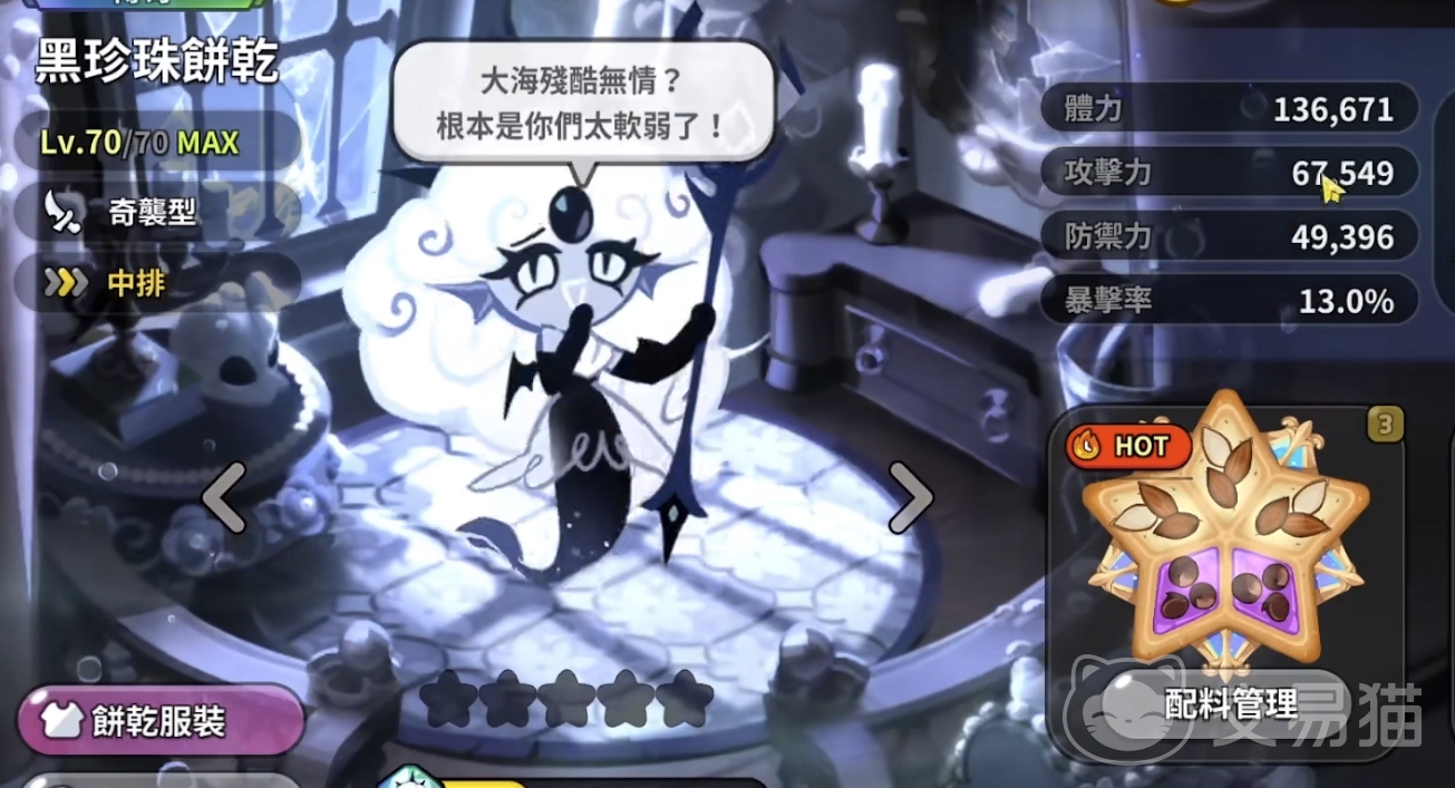 最后为大家介绍的角色是黑珍珠饼干,这个角色的定位属于奇袭类。她的厉害之处在于技能是可以对敌人造成固定伤害的。这就意味着她的攻击是可以无视敌人的防御的。并且在她攻击完敌人后,还会在攻击地点留下一个负面效果,持续扣血加减攻速的。但她自身的缺点也很明显,就是身板太脆了,需要队友保护并且提供输出空间。