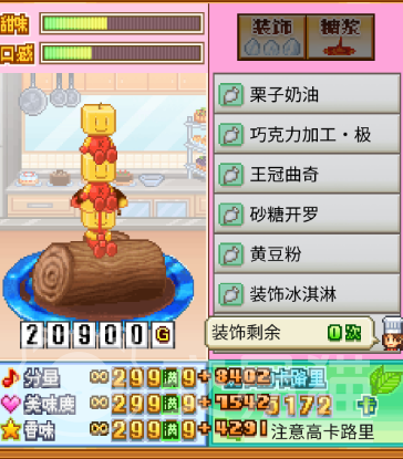 而砂糖系在游戏中主要制作一些蛋糕的时候,需要特别进行追加的,主要是为了给蛋糕追加分数的,游戏中的蛋糕分数主要分为了【分量】【香味】【美味度】,而砂糖系可以增加蛋糕的美味度分数,这样制作之后就可以卖出比较高的价格,但是唯一的缺点就是会增加蛋糕的卡路里!