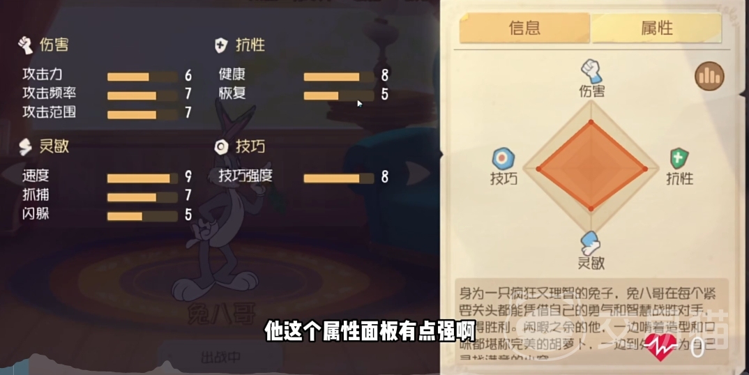 以上就是猫和老鼠手游兔八哥技能怎么样的相关介绍啦,大家要是想在游戏中使用兔八哥的话,本期小编带来的介绍大家就可以好好的查看一下,兔八哥的被动技能确实是一个不错的技能片。