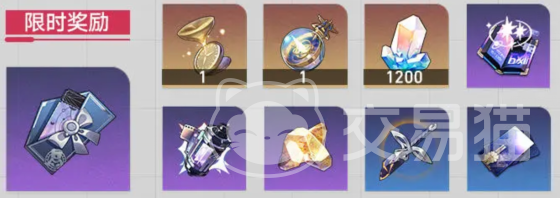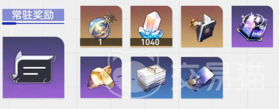 玩法方面的话就是这么多了,接下来要带大家看的就是该小游戏的奖励了,奖励方面分为了限时、选择和常驻奖励三种。首先是限时奖励限时奖励会给到招募卷、水晶还有很多材料奖励,第二种选择奖励会给到四位四星角色,大家可以在其中任选一位。