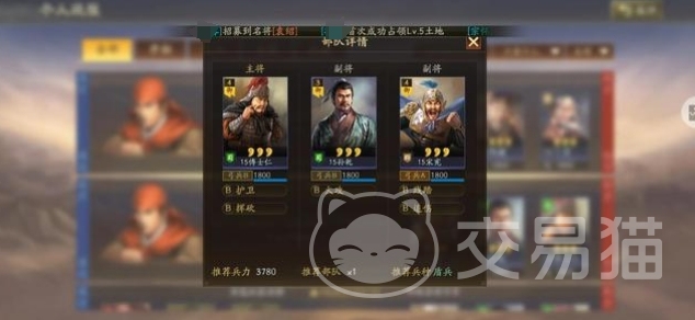 一开始比较简单的四级地大家可以去开丁原的那块地,那块地上面是有弓兵的,所以大家还需要注意一下弓兵,以及救援上面有一个陶谦,要是大家有阵容,这快地还是好打的,第二个就是卞喜跟糜芳一起的那块地,其实这个地的阵容里面是没有多少输出的。