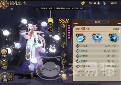 天狐:天狐是一个以水属性为主的辅助角色,她的技能可以为友方提供灵气,并且可以根据自身拥有的灵气增加自身和友方的速度。天狐还可以在每回合结束时为友方恢复生命值,并且可以根据自身拥有的灵气增加自身和友方的暴击率。天狐是一个非常适合作为回能和增益的角色,可以配合其他水属性角色或者输出角色发挥更大的威力。
