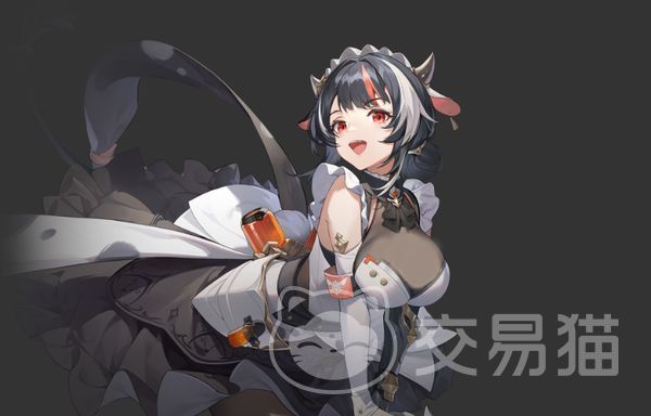 该角色她在游戏中的外表是非常好看的,头发是黑色的,在刘海还做了红色的挑染,两边还做了对称的白色挑染,显得有一些俏皮,她的眼睛是红色的,还带了一个犄角的发带,有一对白色软乎乎的耳朵,别看她外观软乎乎的,但是她在游戏中的战斗强度确实非常高的。
