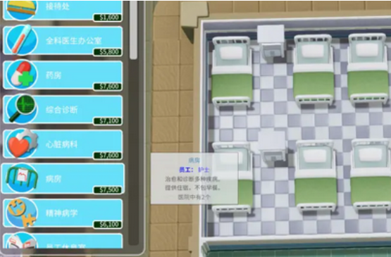 在布置病房的过程中,玩家可以参照现实生活中的医院布局,这是对于玩家来说最简单,同时又不用思考的一种方式,在游戏中,玩家可以在靠墙的位置多放置几个药柜,然后在药柜前放置一个诊病台,如果遇到患者,那就需要在这里诊病,比较轻一点的症状可以直接抓药,如果症状比较严重的话,就需要直接放到隔壁的病房中进行手术。