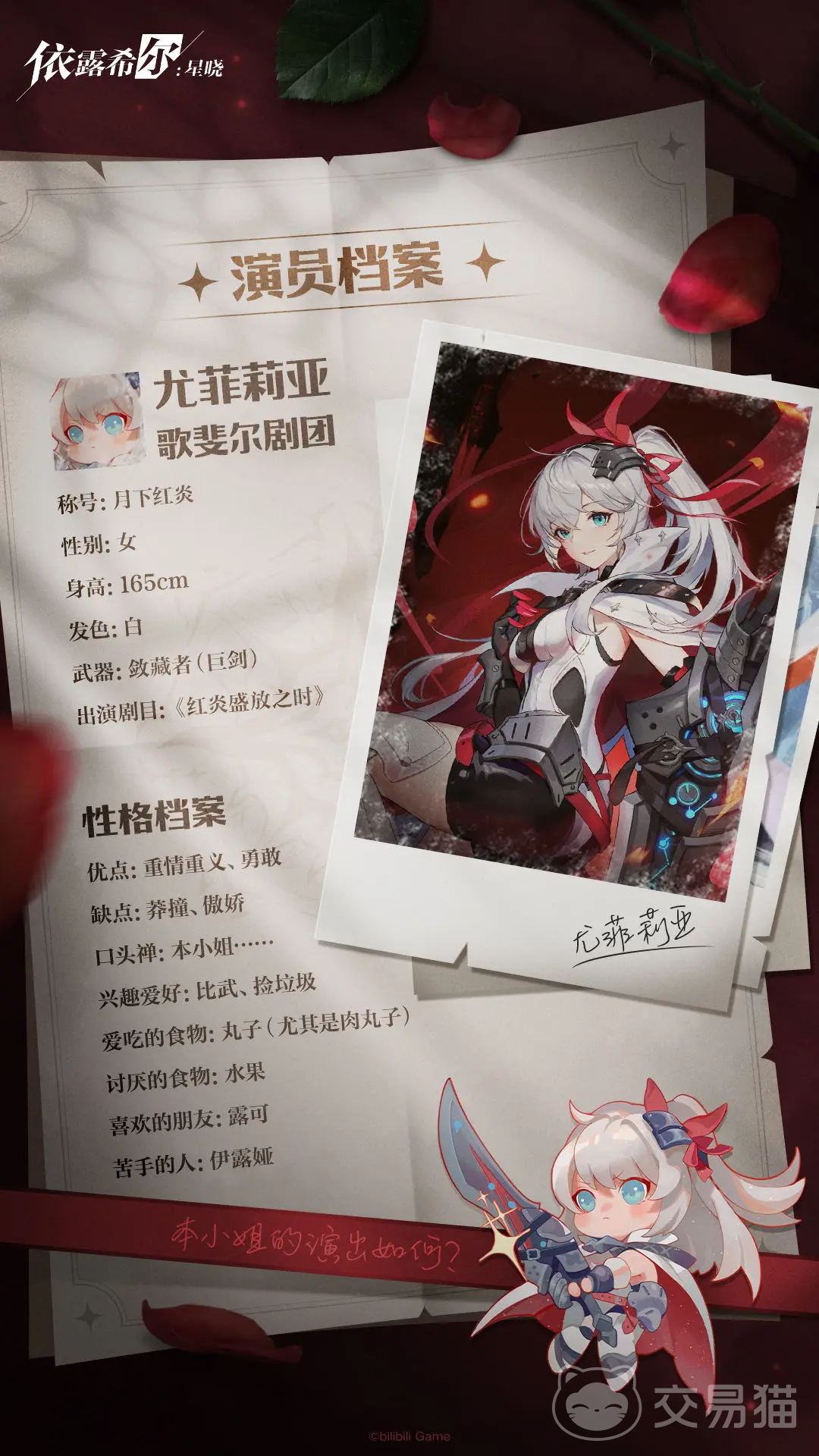 战心职业当中有两个代表性的人物,一个是尤菲莉亚,她是月下红炎,在设定上盖角色重情重义,而且非常勇敢,性格方面有点莽撞,也有些许的傲娇,非常喜欢吃丸子类型的食物,有一个好朋友是露可,可以作为输出来使用的一个角色。