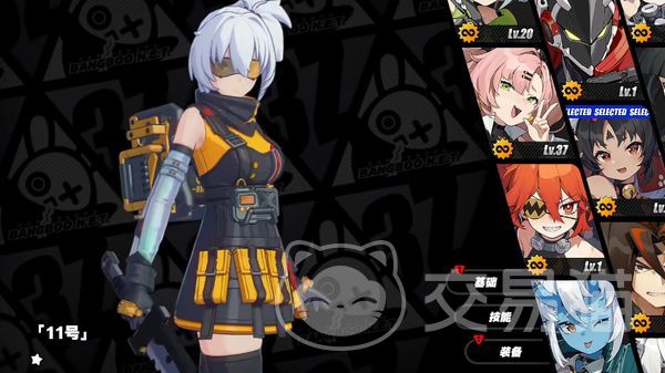 11号:她在游戏中是一个非常炫酷的女孩,白色的头发被高高扎起,还带了一个暗黄色的墨镜,显得非常的炫酷,服装上也呈黑黄色,看起来就像是一个杀手,她使用的武器是一把带着齿轮的长刀,通常是背在背后的。