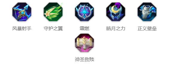 第1组是半肉战士装,玩家们可以优先选择守护之翼、霜燃、皓月之力、正义壁垒、风爆射手、神圣救赎。