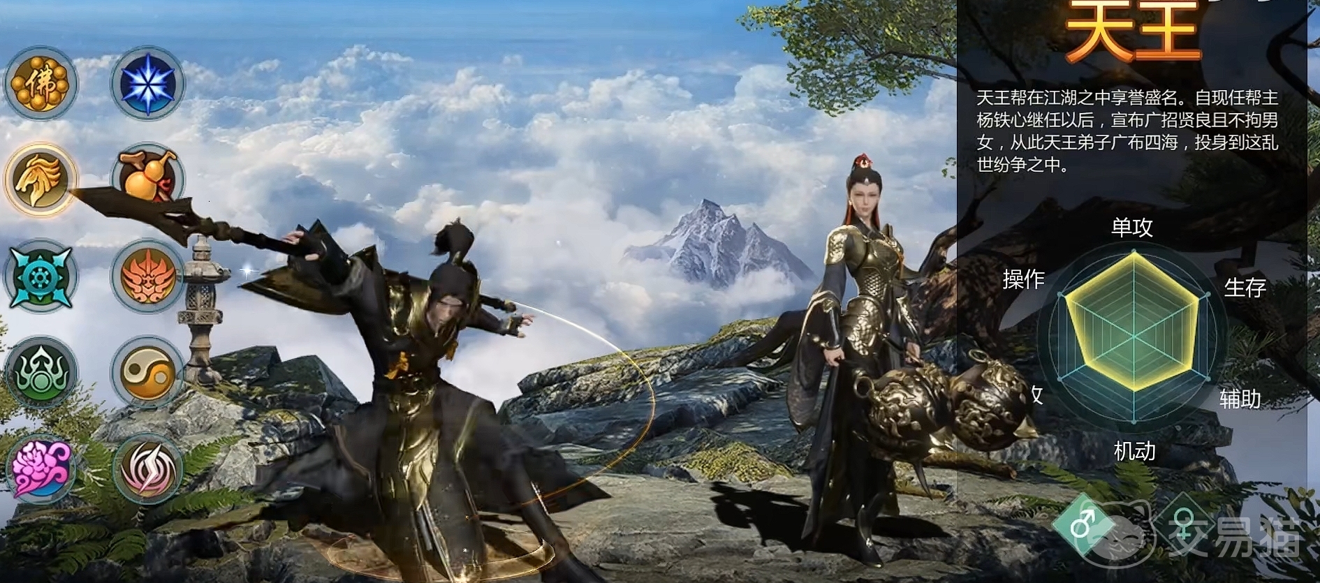 第二个便是从战火当中淬炼而生的天王职业,作为在江湖当中享誉盛名的天王帮,极为擅长主动进攻,有着极为出色的近身作战能力和超高的攻速技能效果,面对目前各大类型职业都有不错的应对能力。算是综合属性最强的职业选择之一,即便是不氪金也能玩的很舒服。