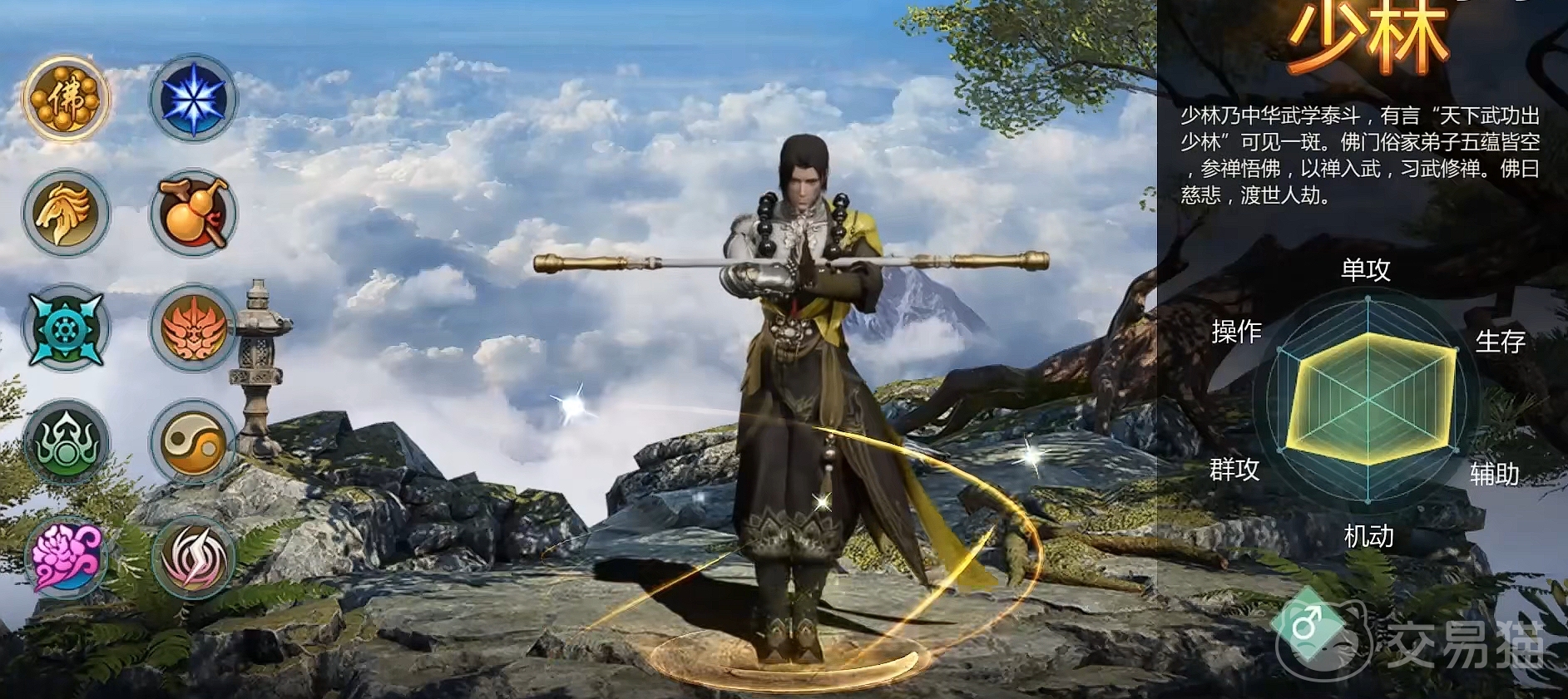 第一个给大家推荐的,便是大家耳熟能详的经典职业少林。作为心系苍生,降妖除魔的典范,佛门中人的少林,慈悲为怀,乃天下武学是正统,可以说是武林目前所有门派当中至刚至阳的存在。且强度而言,在目前的版本职业当中,也非常的好用,特别是正面战场环境下,有着极为不错的发挥空间。