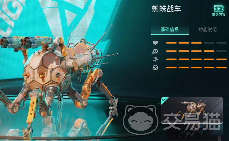 在游戏中的载具数量非常多,即使是初次进入游戏,玩家可用的载具就达到了十几种,但是在这些载具中,对于玩家来说有四种是作用最大的,比如火箭猎蛛,这个载具的外观和性能结合了火箭和蜘蛛,虽然移动速度比较慢,但是这个载具有着非常强大的攻击能力,而且血量也比较高,新手玩家可以使用这个载具很好的保护自己,要注意的是,如果要使用这个载具,那就需要提前移动到一个安全的位置,避免受到对手的攻击。
