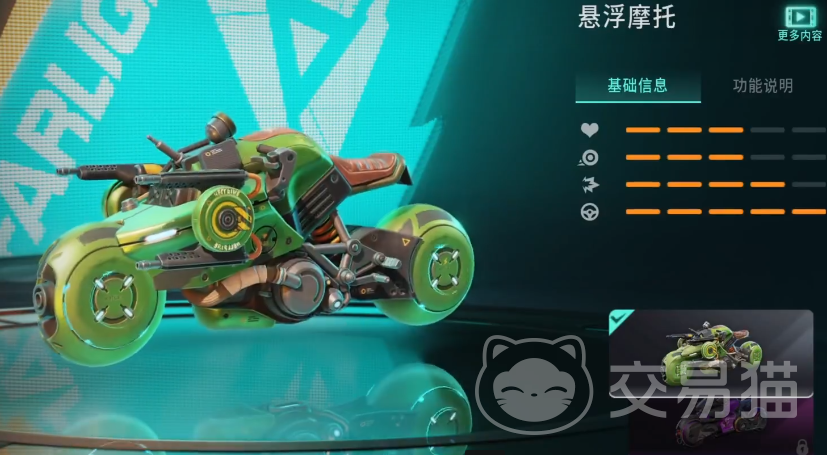 其次,在游戏中可以选用的就是悬浮摩托,这个摩托可以帮助玩家有非常快的移动速度,甚至于可以让玩家在游戏中隐身,如果想要渡过河流,那也可以选择骑行这个摩托,缺点就是这个载具只能容纳一个人,蜘蛛战车也是游戏中比较推荐的一个载具,在外观还是性能上和火箭猎蛛都有着比较大的区别,这个载具的行驶速度非常快,而且可以跳跃或者垂直攀爬,能让玩家在游戏中相对比较灵活。