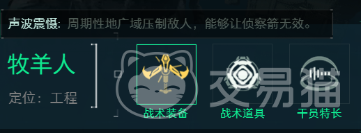 能力方面它总共有三个,第一个是来自于战术装备的“声波震慑”,可以通过装备来周期性的施放声波压制敌人,这个声波能够直接令敌人的侦察箭失去作用,非常有利于对抗敌人的侦察手段。