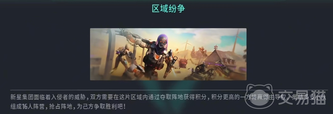 第三个便是我们的竞技模式玩法,或者说一些特殊的娱乐模式。总共有数种截然不同的玩法,其中涵盖了我们常规的热身比赛,1v1单挑以及区域纷争。其中最有意思的可能就是单挑玩法以及区域纷争玩法,这两场比赛都极有特点。前者玩家们可以操纵致命武器与另外一名玩家单挑竞技,后者则是16v16的大地图占点,最后取得胜利。