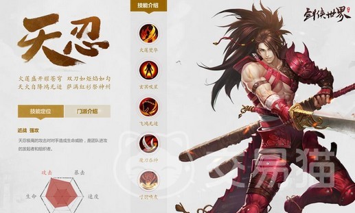 天忍这个门派使用的是枪和刀作为战斗的武器,这个门派又被分成了种,一种是枪为武器的战天忍,一种是以刀为武器的刀天忍,这个门派的以打输出为特色,可以给敌人造成减速效果,带有一定的控制能力,可以将敌人束缚在原地不动,更有输出的空间。而且这个门派非常精通使用枪法或者刀法,进行迅猛的攻击,给到敌人最致命的击杀。