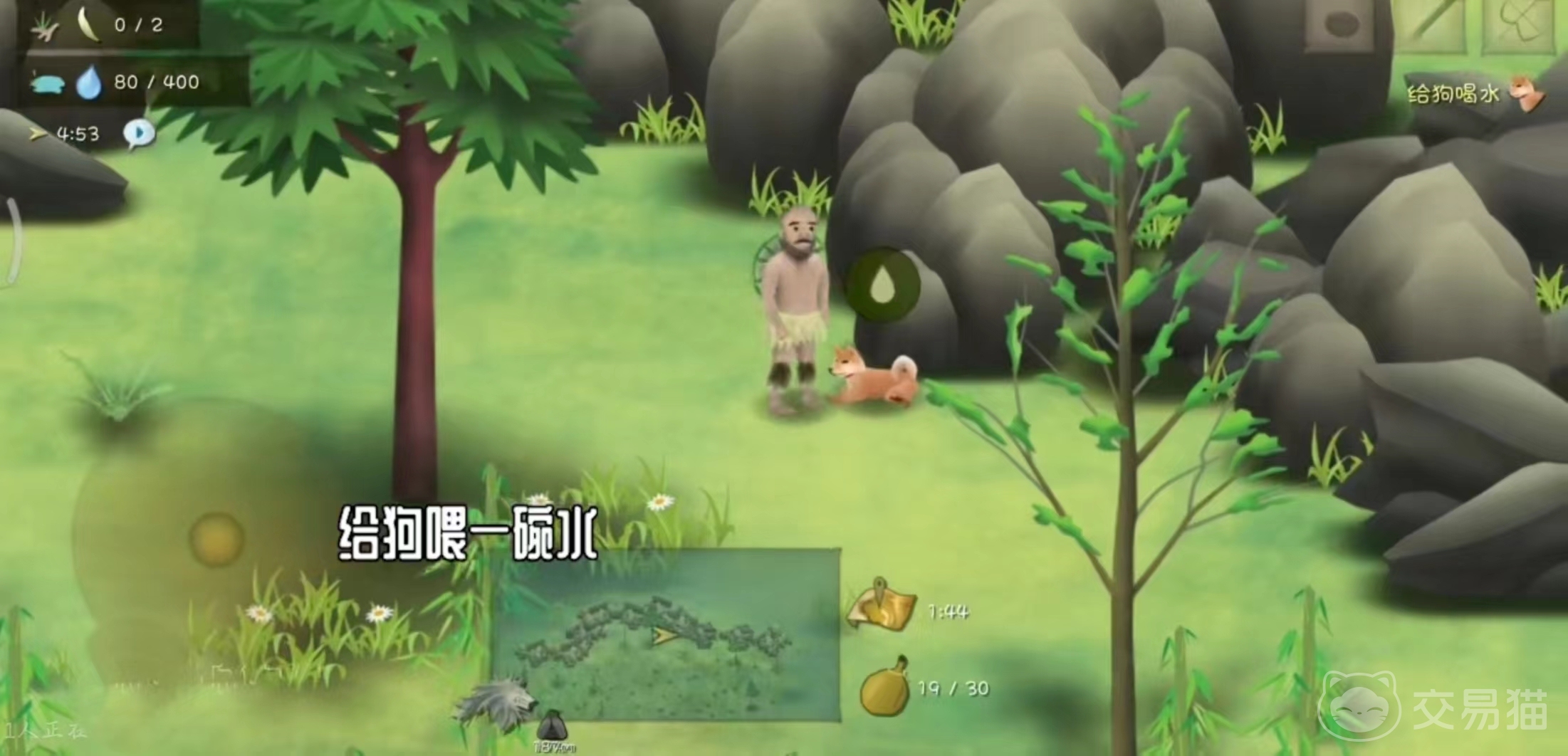 狗的位置大概是在靠近东北方向的石堆旁边,一定要带着一块肉和一竹筒水去找狗,之后再把这个狗带着一起去寻找老人,这个任务基本上就完成了,还有一个隐藏的任务,就是需要玩家去抓甲鱼,首先确定甲鱼的位置是在最西的一个方向的水塘里面,到了那里之后就会发现有一个洞,可以直接做一个比较大的捕鱼网放进去 ,然后只需要等待甲鱼的上钩,这个过程是需要等一点时间的。