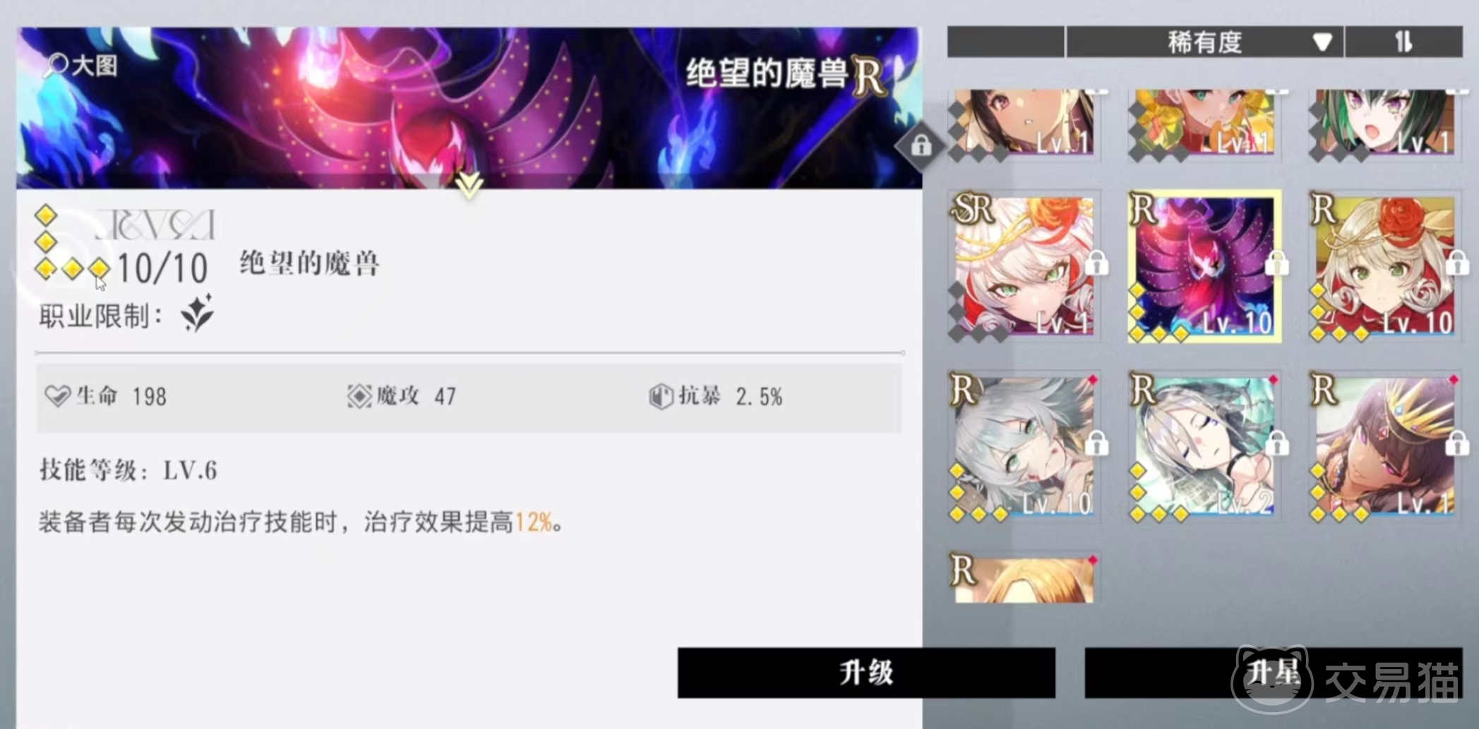 第三个要介绍的是绝望的魔兽,这个乐装的攻击技能一般都是使用魔攻,当角色装备上了这个乐装以后,那么当每次触发到治疗技能的时候,都能够让自身的技能伤害再提升7%,并且能够得到的治疗效果也会提升12%。