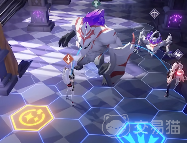 游戏里面的战斗是属于即时的回合制游戏,玩家们在遭遇到敌人的时候,会形成一个由很多六边形立方体所组成的地图,玩家们需要根据敌人的分布,在这个地图上设置队伍中角色的站位,尽量让自身在进入战斗的时候就能获取到优势。