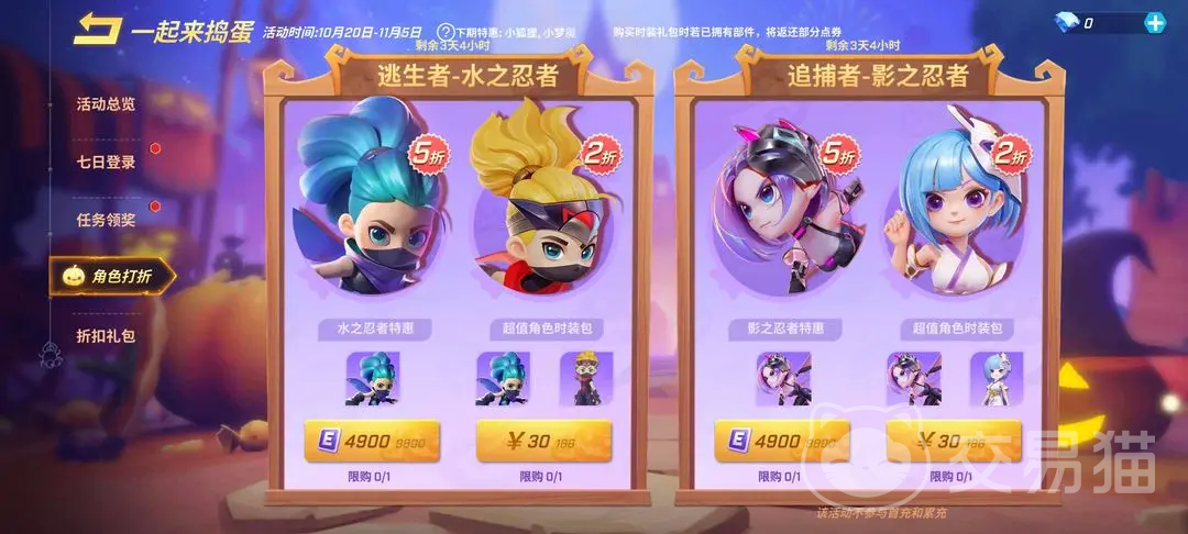 接下来就是角色打折的活动,大家可以用特惠的价格来购买之前还没来得及拥有的角色,还有相关的时装,当然在此期间,特惠的活动角色是会进行更换的,一共有四轮的机会,所以在每轮有大家心仪的角色的时候,那么就不要错过,错过就是下一轮了。