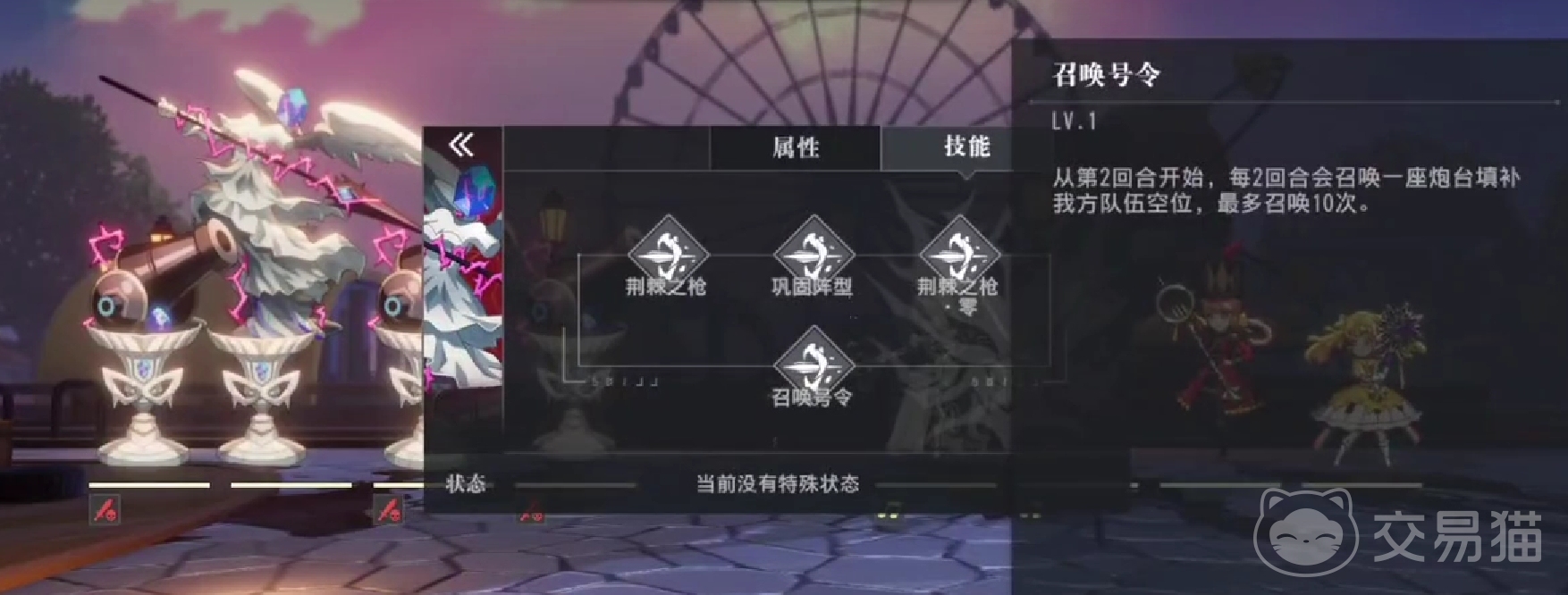 难点在于他的被动和技能可以召唤炮台,每两个回合可以召唤一个炮台,同时还能给予炮台额外的增伤效果。加上炮台本身的属性也非常不错,攻略起来较为困难。这边推荐各位玩家们第一时间在保证自己状态的情况下优先消灭敌方炮台和boss的血量,尽量要保证对面只存在1到2个炮台,之后再对boss进行攻略。