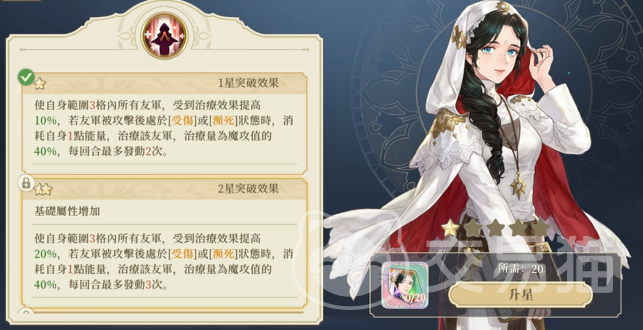 相较于伊南娜,萨曼莎虽然没有像再动这样bug 的技能,但她的强大之处在于开启大招之后能够让周身范围5格内的友军都进入免伤状态三回合,这项能力使得前期很多治疗压力大的关卡都不再让人头痛,同时也让各位挂自动的翻车几率大大降低,是前期开荒阶段必带的一名奶妈角色,十分建议大家开局直接拿下。