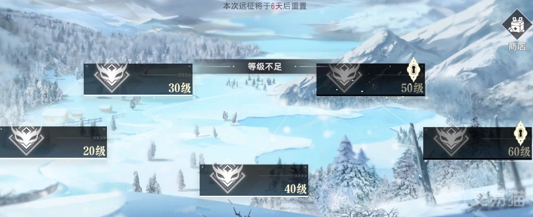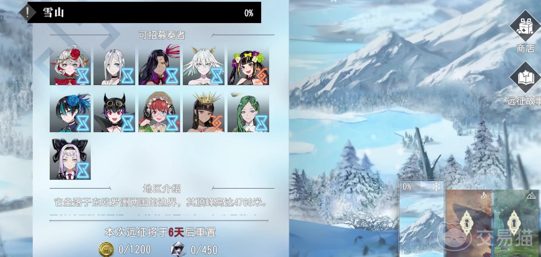 目前,远征总共有雪山,火山和峡谷三个不同的地图。每一张图只能使用系统规定的角色进行挑战,简单来说就是锁了角色人物。其中蓝色的是玩家已经拥有的,而橙色则是没有获得的。但是系统却可以借给玩家使用,因此,虽然锁了人,但可选的阵容余地还是很多的。