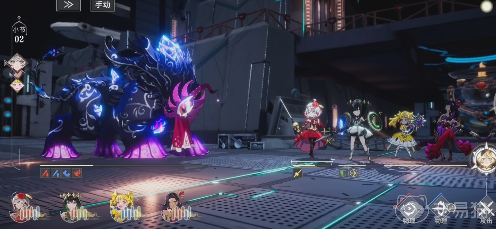 所以,在队伍配置方面要求较高。这边比较建议各位玩家们组成同颜色的队伍。例如,前期的四季队,她们的大招和技能搭配就非常的和谐。每一个角色开过一遍技能之后,大招也就冲能得差不多了,下个回合说不定就可以直接开出来。