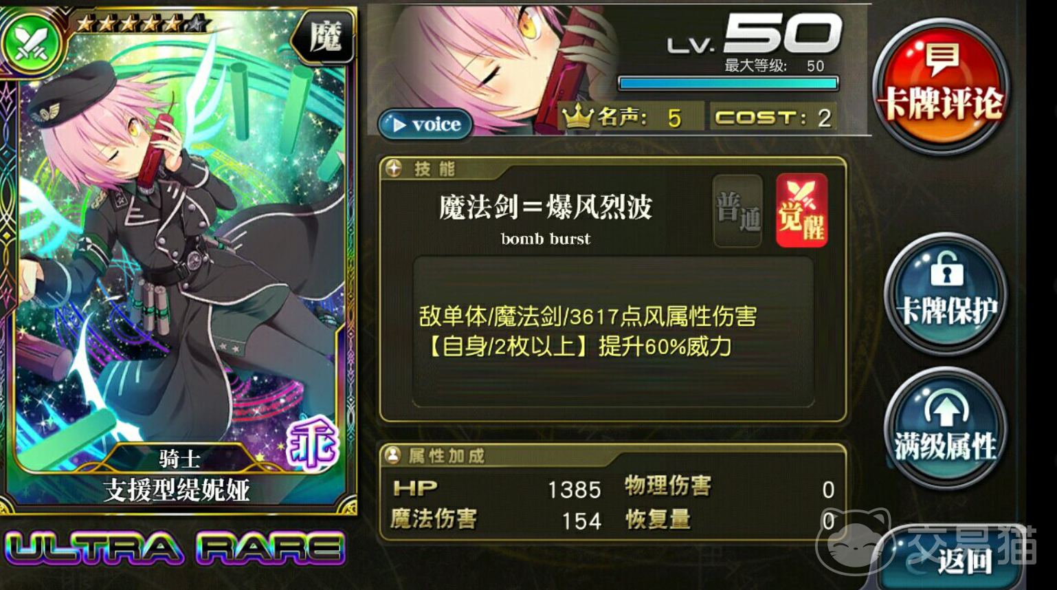 然后是各个角色的属性,属性克制会是游戏的重要关键,选择克制的英雄更有利于游戏胜利。游戏中主要有火,风,水,暗和光五种属性,火克风,水克火,风克水,暗和光互相克制。想玩输出角色必须选好英雄属性,最好是带克制属性的UR卡。