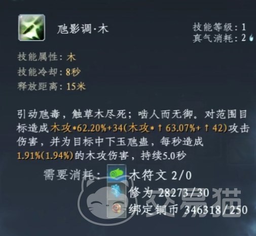 虺影调·木,范围木攻伤害,外加持续伤害。