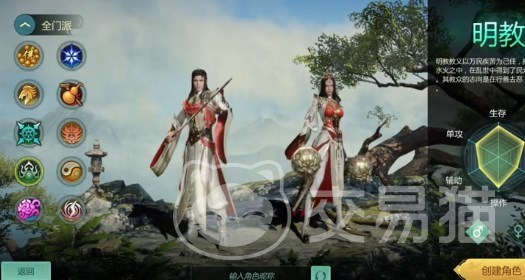 锤明教与剑明教,锤明是近战职业,比较擅长打架,有着高攻的攻击,爆发也不错,并且自带回血类的技能,生存能力很强。剑明则是远程职业,有很高的闪避,而且还有大家熟悉的经典的乾坤大挪移技能,可以去除敌人的增益,单凭这一个技能他便有就业空间。
