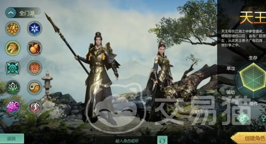 分为锤子与枪两种,锤天王的属性更高一点,属于辅助型的职业,可以用来抗怪,本身拥有可以极大提升坦度的金钟罩技能,生存能力在一众门派职业位居前列。枪天王则是另一面,近战高爆发高防御,一般喜欢打架的会更多用这个职业。