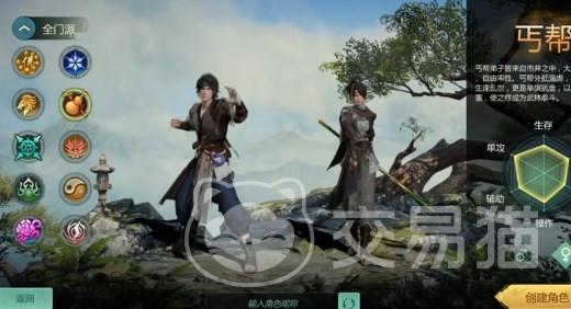 分为掌丐帮与棍丐帮,掌丐帮属于远程,利用掌风攻击敌人,群攻输出很高,玩起来爽快感十足,爆发力也很强,适合普通的散人或者刚入坑的小白玩家体验这个游戏,棍丐帮在一定程度上也是远程,有较高的爆发可以控制效果,既能打也能控,也是普通散人玩家的首选。