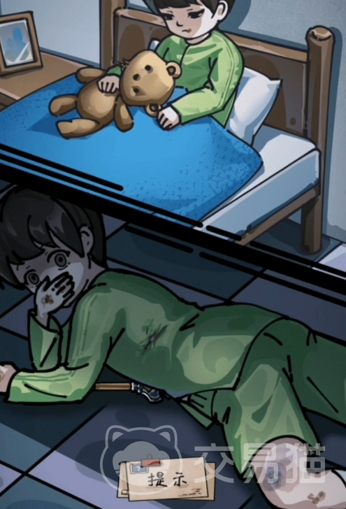 首先在第一幕,玩家们先看到床上的孩子,这个时候先点击床上孩子的一些玩具,书籍,衣服和五官。在点完这些后玩家所操作的角色会得出一个判断,之后便可以进行触发滑被角的事件,之后点击绳子便可以触发下一段的剧情。