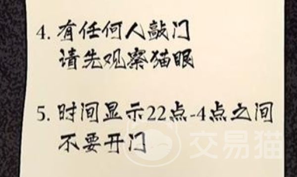 完成这一步操作之后,大家就可以到自己的房间里面点击桌子上的纸条进行查看,将规则查看好之后再将闹钟时间调整到21点,时间调整好之后就可以看房间门上的猫眼,接着出现一个选择题,大家直接点击开门即可。